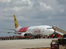 The Tiruchirapalli International Airport is the second biggest airport in Tamil Nadu after Chennai International Airport. It was first used to handle air traffic in 1938 when Tata Airlines' commercial flights stopped at Tiruchirappalli on the Karachi-Colombo route.[15] In 1948, Air Ceylon commenced daily passenger flights between Tiruchirappalli and Colombo via Jaffna.[16][17] There are regular flights to Chennai,[12] Sri Lanka,[18] and Dubai.[19] Air India Express has an engineering stores complex at Tiruchirapalli International Airport for repairing aircraft.[20]