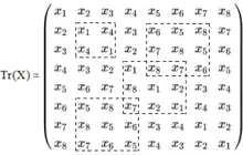 Transpositions matrix (Tr matrix) is square matrix, , , which elements are obtained from the elements of given n-dimensional vector as follows: , where denotes operation "bitwise Exclusive or" (XOR). The rows and columns of Transpositions matrix consists permutation of elements of vector X, as there are n/2 transpositions between every two rows or columns of the matrix
