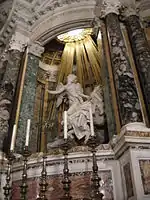 The Ecstasy of Saint Teresa (also known as Saint Teresa in Ecstasy or the Transverberation of Saint Teresa; Italian: L'Estasi di Santa Teresa or Santa Teresa in estasi) is a sculptural group in white marble set in an elevated aedicule in the Cornaro Chapel of the church of Santa Maria della Vittoria in Rome. It was designed and completed by Gian Lorenzo Bernini, the leading sculptor of his day, who also designed the setting of the Chapel in marble, stucco and paint. It is generally considered to be one of the sculptural masterpieces of the High Roman Baroque. The sculpture depicts Teresa of Ávila, a Spanish Carmelite nun and saint, swooning in a state of religious ecstasy, while an angel holding a spear stands over her.