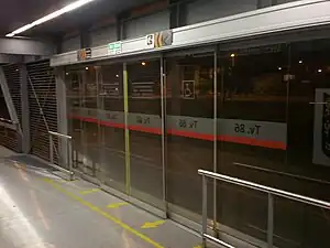 The simple station Transversal 86 is part of the TransMilenio mass-transit system of Bogotá, Colombia, which opened in the year 2000.