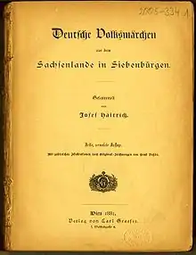 The Transylvanian Saxon literature (German: Die Siebenbürgisch-Sächsische Literatur) is a form of literature which represents the totality of literary works written in the Transylvanian Saxon dialect (a dialect of the German language spoken in Transylvania, contemporary central Romania since the High Middle Ages onwards to the present-day) and Standard German by various Transylvanian Saxon writers in the passing of time.[1] These literary works include both those written in prose and in the lyrical genre, from folk tales to poems and prayers. Additionally, the Transylvanian Saxon literature, in a larger sense, can also included works written by Transylvanian Saxon writers in Latin and Romanian.