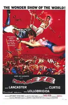 Trapeze is a 1956 American circus film directed by Carol Reed and starring Burt Lancaster, Tony Curtis and Gina Lollobrigida, in her American film debut. The film is based on Max Catto's 1950 novel The Killing Frost, with an adapted screenplay written by Liam O'Brien.[3]