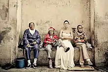 "Trash the dress", also known as "fearless bridal" or "rock the frock", is a style of wedding photography that contrasts elegant feminine clothing with an environment in which it is out of place creating a photo essay of contrast, beauty, and dramatic transformation. It is generally shot in the style of fashion or glamour photography. Such photography often takes place on a beach, but other locations often include lakes and streams, city streets, rooftops, water falls, muddy fields, tub-shower units, garbage dumps, fields, and abandoned buildings. The woman often wears a ball gown, prom dress or wedding dress, and may effectively "trash" the dress in the process by getting it wet, dirty, or, in extreme circumstances, tearing, cutting, or destroying the garment, or entire outfit. However, in the great majority of these photo sessions, the dress is not ruined and is easily cleaned.[1][2]