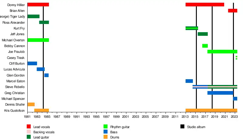- Kris Gustofson – drums (1982–1985, 2013–present)