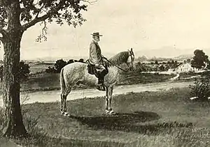 In the spring of 1861, a year before achieving fame as a Confederate general, Robert E. Lee was commanding a small force in western Virginia. The quartermaster of the 3rd Regiment, Wise Legion,[4][5] Captain Joseph M. Broun, was directed to "purchase a good serviceable horse of the best Greenbrier stock for our use during the war." Broun purchased the horse for $175 (approximately $4,545 in 2008)[6] from Andrew Johnston's son, Captain James W. Johnston, and named him Greenbrier. Major Thomas L. Broun, Joseph's brother recalled that Greenbrier: