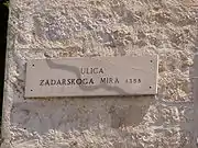 The Treaty of Zadar, also known as the Treaty of Zara, was a peace treaty signed in Zadar, Dalmatia on February 18, 1358. Under the treaty, the Venetian Republic lost influence over its Dalmatian holdings in exchange for ending hostilities with Louis I of Hungary. Both had been contesting control of a series of territories along the eastern Adriatic coastline in what is now Croatia.