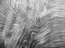 Research has shown that a unique wood grain pattern at the apex of forks in hazel trees (Corylus avellana L.) acts to hold together the branches in this species, and this is probably the case in most other woody plants and trees.[7][8][9] This is an example of 'trade-off' in xylem, where mechanical strength to the tree's junction is gained at the expense of efficiency in tree sap conductance by the production of this specialised wood, known as 'axillary wood'.[10] The complex interlocking wood grain patterns developed in axillary wood present a great opportunity for biomimicry (the mimicking of natural biological structures in man-made materials) in fibrous materials, where the production of a Y-shaped or T-shaped component is needed:[11] particularly in such components that may need to act as a conduit for liquids as well as being mechanically strong.