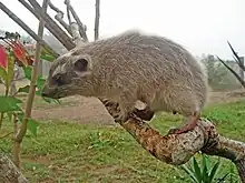 The tree hyrax or tree dassie is a small nocturnal mammal native to Africa. Distantly related to elephants and sea cows, it comprises the four species in the genus Dendrohyrax, one of only three genera in the family Procaviidae, which is the only living family within the order Hyracoidea.
