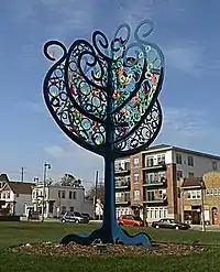 Tree of Life is a public artwork by American artist Nancy Metz White, located at the north end of Mitchell Boulevard Park, a Milwaukee County Park in Milwaukee, Wisconsin. It is located near Miller Park.[1] Unveiled in 2002, Tree of Life is constructed out of recycled steel from industry processes. It stands 2½ stories tall, and is brightly painted. White intended for the sculpture to become a place for Milwaukee locals to gather and forge new community ties.[2]