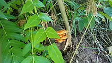 Several species of Lepidoptera use the leaves of Ailanthus as food, including the Indian moon moth (Actias selene) and the common grass yellow (Eurema hecabe). In North America the tree is the host plant for the ailanthus webworm (Atteva aurea), though this ermine moth is native to Central and South America and originally used other members of the mostly tropical Simaroubaceae as its hosts.[54] In the US, it has been found to host the brown marmorated stink bug and the Asiatic shot-hole borer.[19] The spotted lanternfly (L. delicatula), relies on the metabolites of A. altissima for the completion of its life cycle and the pervasiveness of A. altissima is seen as a driving factor in L. delicatula's invasive spread outside of China.[55][56] In its native range A. altissima is associated with at least 32 species of arthropods and 13 species of fungi.[24]