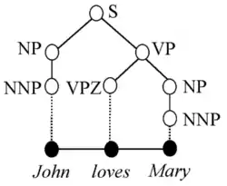 Example phrase structure tree for John loves Mary