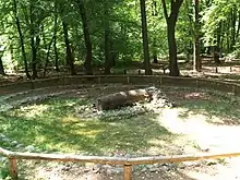 Treetrunk coffins were a feature of some prehistoric elite burials over a wide geographical range, especially in Northern Europe and as far east as the Balts, where cremation was abandoned about the 1st century CE, as well as in central Lithuania, where elites were also buried in treetrunk coffins.[1] The practice survived Christianisation into the Middle Ages.[2]
