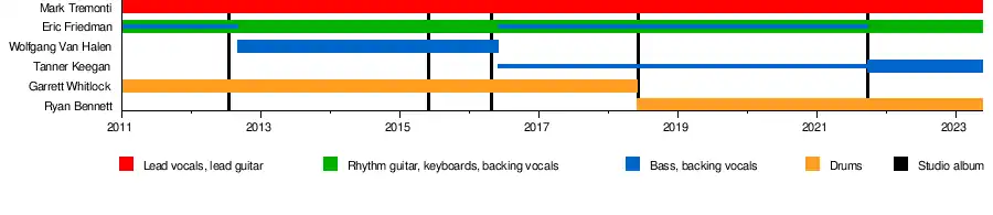 What originally started as a Mark Tremonti solo project evolved into a fully fledged band that has released five studio albums: All I Was in July 2012, Cauterize in June 2015, Dust in April 2016, A Dying Machine in June 2018 and Marching in Time in September 2021. The band's music is a departure from Mark Tremonti's main bands, featuring more of a speed metal influence with melodic vocals.[2]