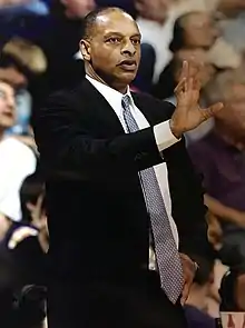 The University of Nevada, Reno hired Johnson as head coach for Nevada Wolf Pack men's basketball on March 7, 1999.[2] This culminated in the 2003–04 season, when Johnson guided the Wolf Pack to a 25–9 record and its first NCAA tournament appearance since 1985. Led by stars Kirk Snyder, Marcelus Kemp, and Nick Fazekas, Nevada defeated Michigan State and Gonzaga in the opening rounds of the tournament, before falling to eventual tournament runner-up Georgia Tech in the Sweet 16.[3]