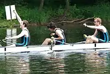 Trevelyan College Boat Club (TCBC) is the boat club of Trevelyan College, at Durham University in England. An active north eastern rowing club, it competes on a national level, for example at Henley Royal Regatta[3] and the Head of the River Race. The club runs under the leadership of a structured executive committee and benefits from an annual intake of around thirty novice rowers each year. The club was founded officially in 1976, although there was a history of rowing at the college earlier, with the first boat bought in 1966. It is recorded that an all fresher crew won the Ladies Invitation Race at the university Epiphany Term regatta in 1967.[4]
