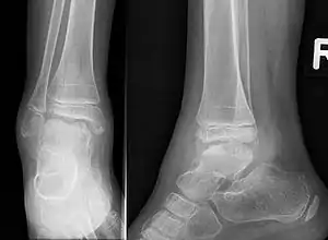 Trevor disease can often mimic posttraumatic osseous fragments,[2][3] synovial chondromatosis, ostechondroma, or anterior spur of ankle.[4][5][6][7] It is not possible to distinguish DEH from osteochondroma on the basis of histopathology alone.[8][6] Special molecular tests of the genes EXT1, EXT2 are used for the analysis of genetic expressions. These are within normal ranges in DEH, while they are lower in ostechondroma (owing to a mutation).[2][6][9][10] These tests are expensive and the diagnosis is often made on clinical and radiological findings. Synovial chondromatosis occurs in a much older age group and can be ruled out on this basis.[2]