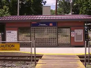 Trevose station is a station along the SEPTA West Trenton Line to Ewing, New Jersey. It is located at Ridge and Boundbrook Avenues in Bensalem Township, Pennsylvania. The station has off-street parking and a handicapped-accessible platform, however SEPTA has recently announced that they've expanded the number of parking spaces to 219. In FY 2013, Trevose station had a weekday average of 283 boardings and 275 alightings.[6]
