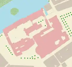 The secret resolution of the States General of 28 August 1618 apparently had not been kept completely secret, because in the evening of 28 August two justices in the Hof van Holland (one of them Adriaan Teding van Berkhout[22]) came to the house of Oldenbarnevelt at Kneuterdijk[Note 8] to warn him of his impending arrest, but he did not heed the warning. The next day he rode the short distance to the Binnenhof, where the government center was located, in his carriage (because he had difficulty walking, due to arthritis), accompanied by his personal servant, Jan Francken. When he arrived at his office in the building of the States of Holland a servant of the stadtholder asked him to come to Maurice's personal apartments for "a chat". When he arrived there, he was arrested by the captain of Maurice's personal bodyguard, Pieter van der Meulen. The same subterfuge was used to snare Grotius and Hogerbeets. All three were initially detained in the apartments of the stadtholder under guard. But after a few days they were transferred to a kind of makeshift jail above the Rolzaal (Audience Chamber) of the Hof van Holland behind what is now called the Ridderzaal. These were the rooms that had previously held the Spanish admirante Francisco de Mendoza as a prisoner of war after his capture at the Battle of Nieuwpoort in 1600. Oldenbarnevelt got Mendoza's former room; Grotius the room next to that; and Hogerbeets the room across the corridor, while Ledenberg got a room further down the hall. Later a guardroom was constructed to house the armed guard.[23]