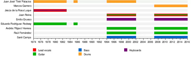 - Jesús de la Rosa Luque (vocals, keyboards) (1974-1983)