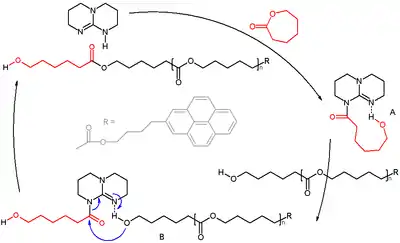 Mechanism proposed for the ring-opening polymerization of caprolactone to polycaprolactone by TBD.[5][6]