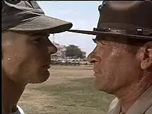 Drake takes the drawing of the bird from his desk drawer and hangs it up, thus signifying his own method of rebellion and freedom. The platoon graduates without Adrian. As Drake awaits a new batch of recruits, DePayster informs him that Adrian went "over the hill" during the night.