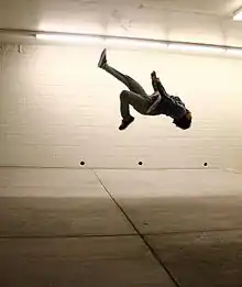 Tricking is a training discipline that combines kicks with flips and twists from martial arts and gymnastics as well as many dance moves and styles from breakdancing. It is a martial art that borrows techniques from taekwondo, wushu, capoeira, and more. It aims to achieve an aesthetic display of different combinations of "tricks". Tricking practitioners are commonly referred to as trickers. Examples of tricking techniques include the 540 kick, the corkscrew (cork), the flashkick, the butterfly twist and the double leg.