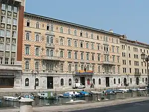 Besides the Saint Spyridon Church and the Jovan Miletić Serbian School, the Serbs of Trieste contributed to several other important landmarks of the city. The Gopčević family built the Palazzo Gopcevich on the Canale Grande, near the St. Spyridon Serbian Church, in 1850 in commemoration of the heroes who fought for the independence of Serbia from the Ottoman Empire (1814). Cristoforo Popovich owned many famous merchant ships in Trieste, some of the largest in the Adriatic—the Tartana, Il Feroce Dalmata, La Forza, and the Ripatriato—and was instrumental in the Russian-side during the Crimean War (1853–1856). Cristoforo Scuglievich (Risto Skuljevic) built the Palazzo Scuglievich in the mid-1800s along the banks of the city, and donated the palace in his will to the Serbian community of Trieste; today it is owned by the Serb community.[8] In addition to this, in the city center there are also the palaces of Serb merchants, such as the Palazzo Vucetich, Palazzo Popovich, Palazzo Kurtovich, and Casa Ivanovich.