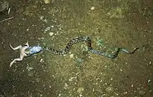 They are nocturnal and secretive, spending most of their time in rock crevices, and other areas difficult for potential predators to access. Their diet consists of lizards, small rodents, frogs, and bats. Their venom is not considered to be harmful to humans.