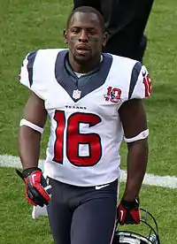 Trindon Jerard Holliday (born April 27, 1986) is a former American football wide receiver and return specialist. He was drafted by the Houston Texans in the sixth round of the 2010 NFL draft. He played college football at LSU. At 5'5", Holliday is one of the shortest players in NFL history.[1] He has also played for the Denver Broncos, New York Giants, Tampa Bay Buccaneers, San Francisco 49ers, and Oakland Raiders.