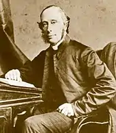 In 1849, over strong opposition from Strachan, Robert Baldwin's Reformist government took control of the college and secularized it to become the University of Toronto.[18] Incensed by this decision, Strachan immediately began raising funds for the creation of a new university. Strachan canvassed Great Britain and Upper Canada for donations, and although he fell short of his goal of £30,000, he received significant commitments from the Society for the Propagation of the Gospel, the Duke of Wellington, William Gladstone, and Oxford University. Despite Strachan's public anti-Americanism, the project for a new Anglican university attracted substantial donations from a fundraising campaign in the United States by The Reverend William McMurray.[20][21][22] On April 30, 1851, now-Bishop Strachan led a parade of clergy, schoolboys, and prospective faculty from the Church of St George the Martyr to the site of the new Trinity College. There, Strachan delivered a speech repeating his condemnation of the "destruction of King's College as a Christian institution," and promised that Trinity would fulfil the role of a church university.[23] The Provincial Parliament incorporated Trinity College as an independent university on August 2, 1851.[24] The following year, Strachan - now in his 70s - obtained a Royal Charter for Trinity from Queen Victoria.[25] The college opened to students on January 15, 1852.[18] Most of the first class of students and faculty came from the Diocesan Theological Institute, an Anglican seminar in Cobourg also founded by Strachan in 1842, which dissolved itself in favour of Trinity.[26]