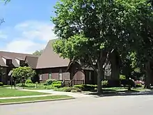 A parish hall was built in 1893, which was later incorporated into a 1956 church building. In 1894, a shallow basement was added under the wood-frame church for the furnace. A Kimball pipe organ was installed in 1894 and new light fixtures added in 1926. In the late 1950s a new, larger church was added, forming a U-shaped courtyard with the original church.[2] A renovation and expansion project modernized some aspects of the church in 1997.