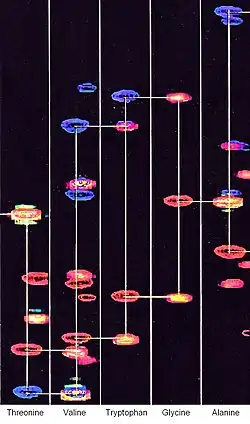 Triple resonance experiments are a set of multi-dimensional nuclear magnetic resonance spectroscopy (NMR) experiments that link three types of atomic nuclei, most typically consisting of 1H, 15N and 13C. These experiments are often used to assign specific resonance signals to specific atoms in an isotopically-enriched protein. The technique was first described in papers by Ad Bax, Mitsuhiko Ikura and Lewis Kay in 1990,[1][2] and further experiments were then added to the suite of experiments. Many of these experiments have since become the standard set of experiments used for sequential assignment of NMR resonances in the determination of protein structure by NMR. They are now an integral part of solution NMR study of proteins, and they may also be used in solid-state NMR.[3][4]