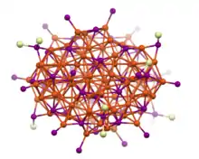 - Fenske, D.; Holstein, W. (1994). "[Cu96P30{P(SiMe3)2}6(PEt3)18], a New Phosphorus-Bridged Copper Cluster". Angew. Chem. Int Ed. Engl. 33 (12): 1290–1292. doi:10.1002/anie.199412901.