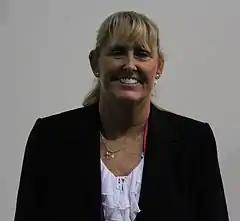 Trischa Zorn (born June 1, 1964 in Orange, California)[1] is an American Paralympic swimmer. Blind from birth, she competed in Paralympic swimming (S12, SB12, and SM12 disability categories).[1] She is the most successful athlete in the history of the Paralympic Games, having won 55 medals (41 gold, 9 silver, and 5 bronze),[2] and was inducted into the Paralympic Hall of Fame in 2012.[3] She took the Paralympic Oath for athletes at the 1996 Summer Paralympics in Atlanta.[4]