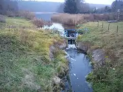 The stream then continues north-westwards, flowing out of the Puszcza Zielonka Landscape Park, and turns sharply southwards at the settlement of Brody south of Wojnowo. It flows through Trojanowo and Przebędowo (where it again forms a small lake), before running along the western side of the town of Murowana Goślina. At a point south-west of the older part of the town (but north of the newer Zielone Wzgórza estate) it again turns north-west, flowing into another lake at Raduszyn, and from there to the village of Mściszewo. It joins the river Warta a short distance to the north-west of Mściszewo. There was formerly a village called Goślinka (or Mała Goślina—"Little Goślina") close to this point, but this is now part of Mściszewo.