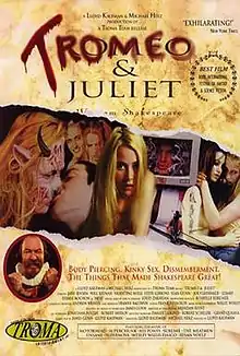 Tromeo and Juliet is a 1996 American independent transgressive romantic black comedy film and a loose adaptation of William Shakespeare's Romeo & Juliet from Troma Entertainment. The film was directed by Lloyd Kaufman from a screenplay by Kaufman and James Gunn, who also served as associate director.[2]