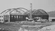 The airport was situated at Skattøra in what was then Tromsøysund Municipality, in today's Tromsø, some 6 kilometers (3.7 mi) north of the city center.[3] The predominant structure at the airport was the twin hangar building. It consists of two concrete arch triplets which carry the roof. Inside the hangar is split in two with a reinforced wall. The structure measures 2,000 square meters (22,000 sq ft).[40] There were two slipways, one falling down from the hangar and one further north.[44] There was a 63-meter (207 ft) pier which ran out from the airport, with a small building at the end.[45] A reinforced wall was built to protect aircraft from attack.[41]