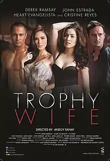 Trophy Wife is a 2014 Filipino romantic drama and thriller film[3] directed by Andoy Ranay, starring Cristine Reyes, Derek Ramsay, Heart Evangelista, and John Estrada. The film will be distributed by Viva Films with the co-production of Multivision Pictures and was released on July 30, 2014 in theatres nationwide.[3][4][5][6][7]
