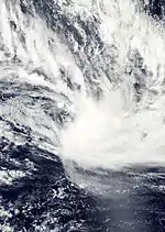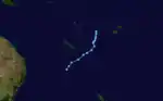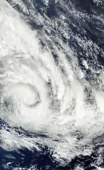 Cyclone Jasmine was a long–lived annular tropical cyclone that affected several countries, particularly Vanuatu and Tonga, over a 19‑day span. Cyclone Jasmine developed from an area of disturbed weather on February 1 in the Gulf of Carpentaria.[33] Initially, the storm moved towards the east and across the Cape York Peninsula.[34] As it moved across the South Pacific, earlier existing wind shear conditions lessened, and Jasmine began to strengthen at a faster rate. Steadily intensifying, Erica reached peak intensity on February 8 as a Category 4 equivalent on the Saffir–Simpson hurricane scale, while beginning to show annular characteristics. The next day Jasmine entered an area of vertical wind shear, which consequently weakened the cyclone and caused its eye to expand. A high-pressure area south of Jasmine later steered the weakening cyclone to the northeast on February 12.[35] Although it entered an area of warmer sea surface temperatures, Jasmine subsequently entered extratropical transition and later degenerated into an extratropical cyclone on February 16, before dissipating completely on February 19.[36]
