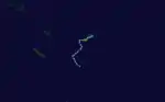On February 5, the FMS reported that a tropical disturbance had developed, about 310 km (190 mi) to the southeast of Nadi, Fiji.[22][23] During that day the disturbance moved towards the northeast and passed through the Fijian islands, while convection surrounding the system increased and organized before it was declared a tropical depression early the next day.[24] Later that day as the system started to move towards the southeast it rapidly consolidated further with the JTWC and the FMS both reporting that the depression had developed into a tropical cyclone, with the later naming it Cyril as it moved south-eastwards through the Tongan islands.[25][26] Early on February 7 after Cyril had moved through Tonga, the JTWC reported that Cyril had peaked with 1-minute windspeeds of 100 km/h (60 mph), which made it equivalent to a tropical storm.[27]