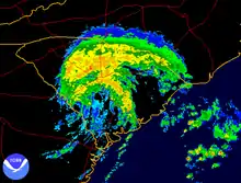 Across coastal areas, the storm surge flooding caused minor damage to dozens of homes and closed several roads. Near Homosassa, two people who did not evacuate required water rescue. At Egmont Key State Park, a woman fell off of a boat when a band of showers and surging currents made navigation difficult; her husband and a friend drowned after jumping in to save her without life jackets, though the woman returned safely to the boat.[25] The rainfall caused some temporary road flooding, though precipitation was mostly beneficial in alleviating drought conditions. Moderate wind gusts caused scattered power outages and downed some trees across the northeast portion of the state.[34] Overall, property damage in the state rose to about $390,000 (2006 USD) in total.[25][35]