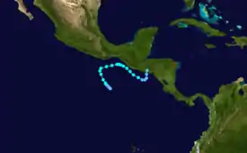 Tropical Storm Andres is one of only three tropical cyclones on record to strike El Salvador. The first named storm of the active 1997 Pacific hurricane season, Andres formed on June 1 off the coast of Mexico. It initially moved toward the coast, although a change in steering winds turned the storm toward Mexico and Guatemala. After passing just offshore, Andres again changed direction toward the southeast, gradually weakening in the process. On June 7, it turned toward and hit El Salvador before dissipating. The storm brought rainfall to coastlines along much of its path, destroying some houses and inflicted damage. Two fishermen were reported missing in Nicaragua due to high seas, and there were four deaths in El Salvador.