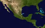 A trough in the western Gulf of Mexico produced an area of thunderstorms. On August 7, a Hurricane Hunters flight observed a circulation, indicating that a tropical depression developed. The system moved southwestward, making landfall near Tuxpan in northeastern Mexico early on August 8. It quickly dissipated after moving ashore.[15]