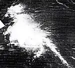 On August 14, a tropical wave developed into a tropical depression while located about midway between the Lesser Antilles and the coast of Africa. The following day, the depression strengthened into Tropical Storm Debbie. By 12:00 UTC on August 16, Debbie became a Category 1 hurricane, and continued intensification led to its first peak of 105 mph (169 km/h) by 18:00 UTC on August 17. Debbie then began oscillating between a Category 1 and a Category 2 hurricane for the next few days,[2] possibly due to being seeded by silver iodide as part of Project Stormfury, though reanalysis suggested that an eyewall replacement cycle was the culprit instead.[4][15] Moving northwestward, Debbie began re-intensifying on August 19, becoming Category 3 hurricane with winds of 115 mph (185 km/h) by 18:00 UTC. By 00:00 UTC on August 20, Debbie peaked with winds of 125 mph (201 km/h), which it maintained for a full day. The storm's minimum barometric pressure of 950 mbar (28 inHg) was measured by hurricane hunters during this timeframe.[2]