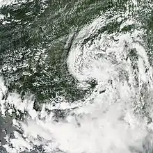 In Okaloosa County, up to 1,267 residents lost power during the storm. Most of the residents had their power restored within a few hours; however, due to continuing wind damage, scattered power outages, affecting up to 500 homes at a time, occurred throughout the county.[43] Throughout the county, roughly $25,000 was sustained in flood losses.[44] A second fatality occurred after a man was knocked off his ship near the coast of Bay County. Rescuers managed to reach him but during the rescue, he fell off the life raft and was lost. The search was later called off as he was presumed dead.[45]
