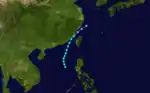 Developing as a tropical depression on September 2, Babe initially tracked west-northwestward as it intensified. On September 5, an abrupt shift in steering currents caused the system to turn north-northwestward. Over the following two days, Babe quickly intensified, ultimately attaining its peak intensity early on September 8 with winds of 240 km/h (150 mph) and a barometric pressure of 905 mbar (hPa; 26.72 inHg). Not long after reaching this strength, another shift in the steering patterns caused the typhoon to execute a prolonged counter-clockwise arc, causing it to track through the Ryukyu Islands, as it interacted with a low pressure originating from the Korean Peninsula. During this time, the system gradually weakened and eventually it made landfall near Shanghai, China on September 11 as a minimal typhoon before dissipating inland the following day.[2][3]