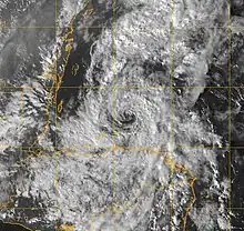 ![]() Tropical Storm Gamma at peak intensity near Honduras on November 19 | |