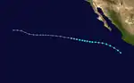 A westward-moving tropical wave from Africa crossed Central America into the eastern Pacific in late June, coalescing into a tropical depression at 12:00 UTC on July 2 well southwest of the southern tip of the Baja California Peninsula.[16] Steered westward by low-level flow, the depression failed to organize amid wind shear and cooler sea surface temperatures,[17] instead degenerating into a remnant low at 00:00 UTC on July 4. The post-tropical cyclone dissipated a day later.[16]