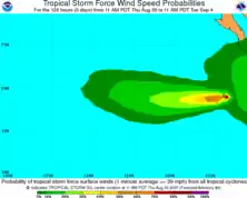 ![]() Tropical Storm Gil on August 30, heading west from the Baja California Peninsula. | |