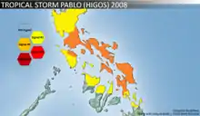 Tropical Storm Higos, known in the Philippines as Tropical Storm Pablo, was a tropical storm during the 2008 Pacific typhoon season. The name "Higos" is the Chamorro word for fig.[1]